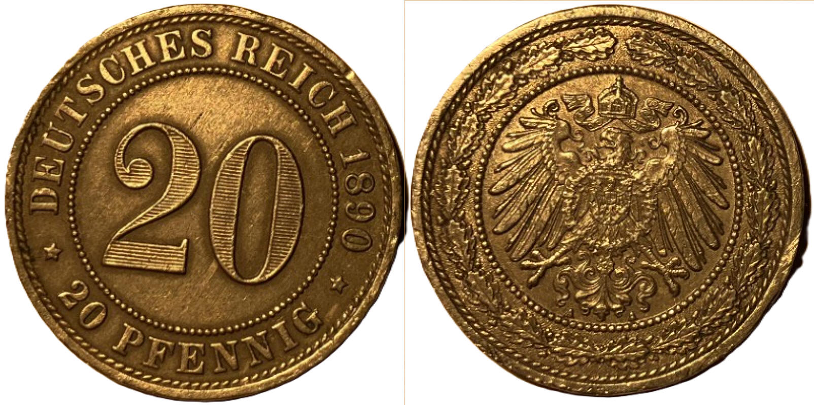 | Omschrift keerzijde | DEUTSCHES REICH 1890 20 • PFENNIG • |