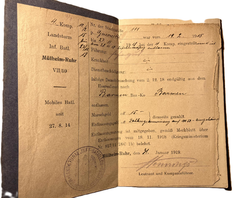 Papier Duits Militairpas en erekruis voor de wereldoorlog