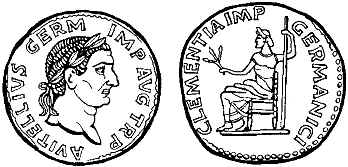 Aureus op naam van Vitellius, op de keerzijde Clementia gezeten in een