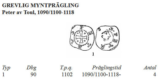 Am dem Ende des 11. Jahrhunderts werden in Remiremont anonyme Petrus-Pfennige geprägt. Ihr Vorbild sind die gleichzeitigen. Stephanus-Pfennige des Bischofs Hermann von Metz, 1073 - 1090. Unter Beibehaltung des. Bildes wird hier der Name des Heiligen Stephan durch den des Heiligen Petrus ersetzt.