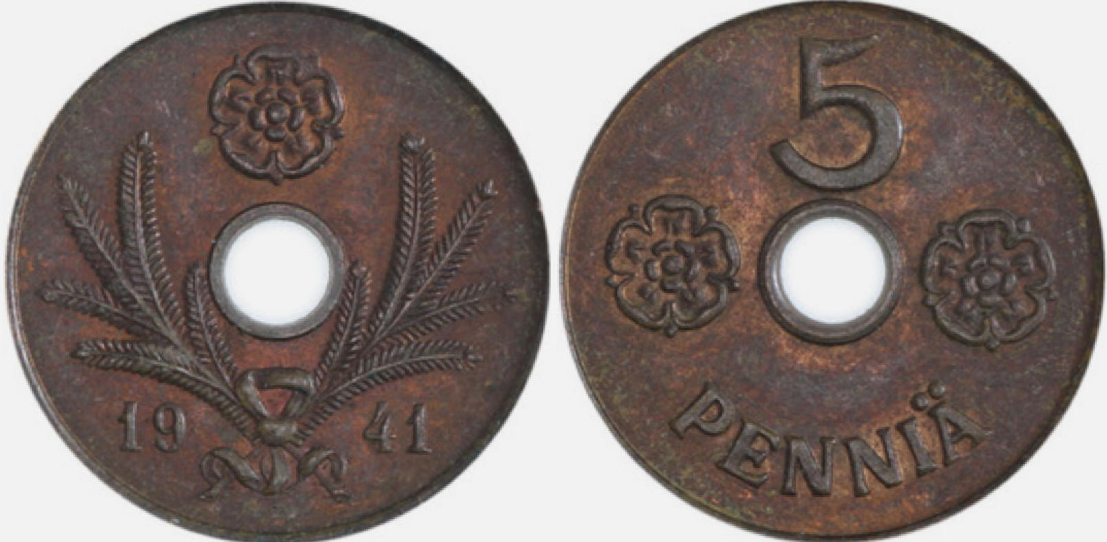 | Land | Finland | Omschrift keerzijde | 5 PENNIÄ |