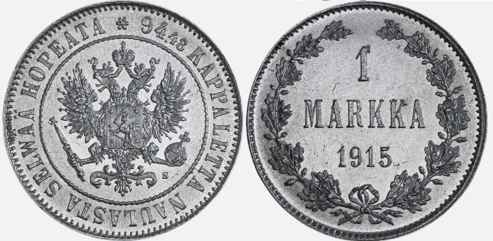 | Muntplaats | Voorzijde | 1 MARKKA 1915 |