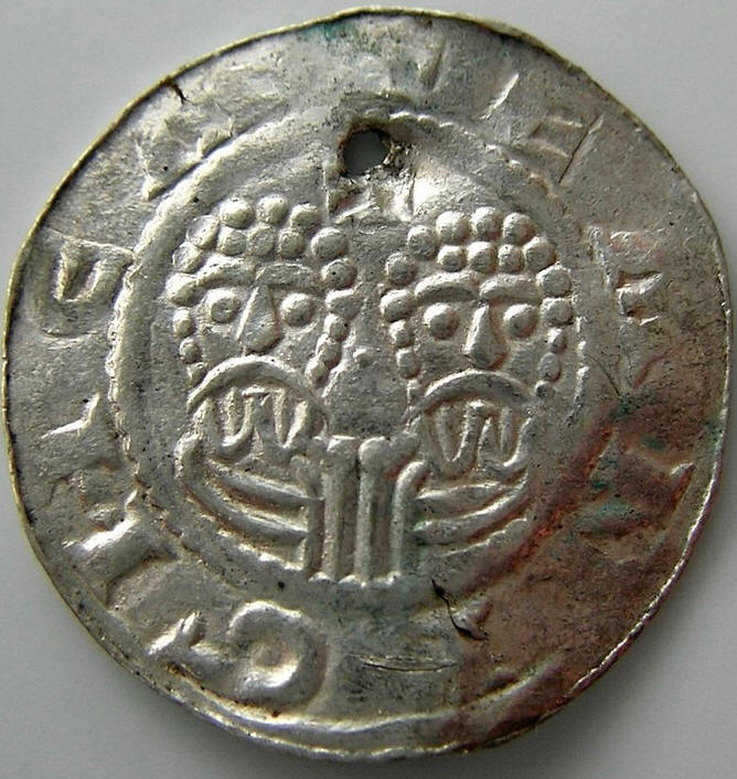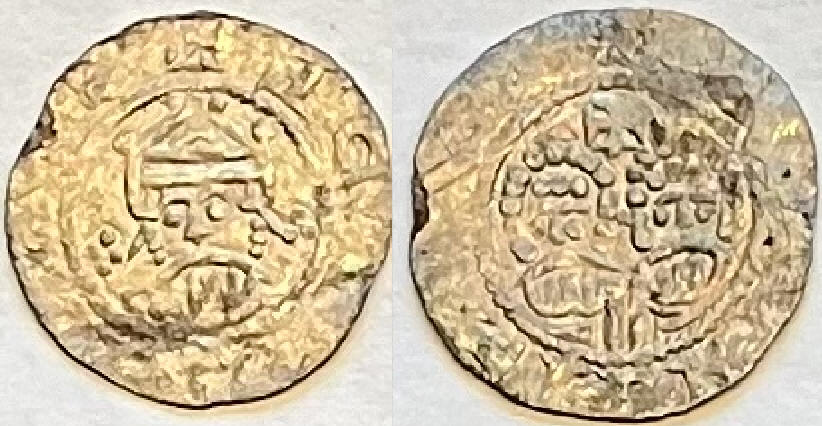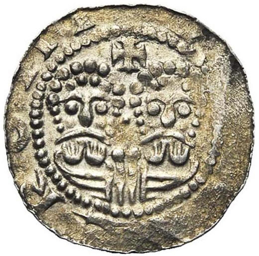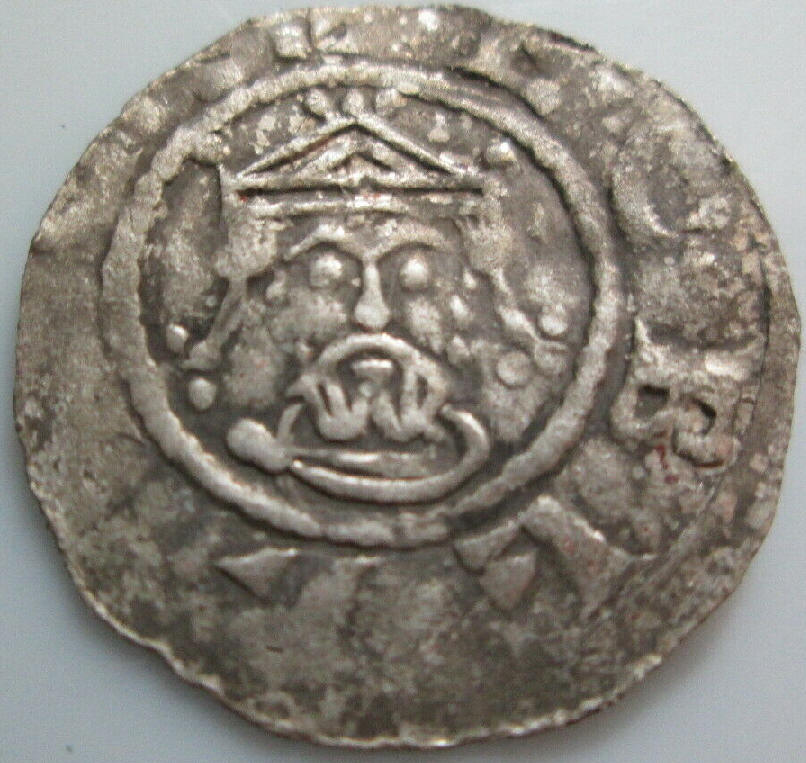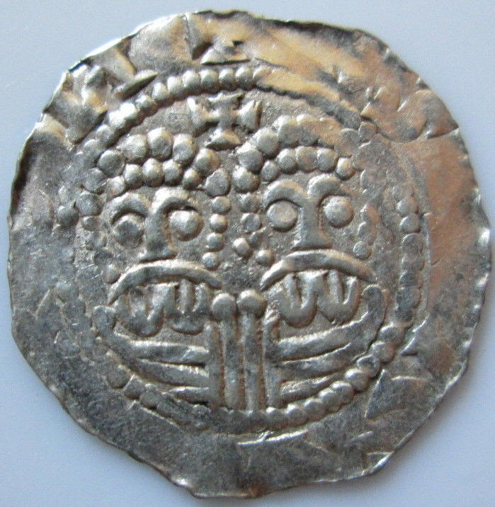 vz gekroonde kop van voren, +ECBERTVS kz borstbeeld van de heiligen Simon en Judas van voren, daarboven kruis DOGGINGVN Verkoper komt uit Estland, waarschijnlijk onderdeel geweest van een viking schatvondst. 0,65 gram, 17,89 mm 18,26 mm ebay, okt 2022, EUR 140 , lubicher |