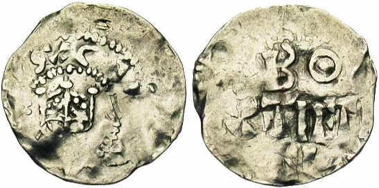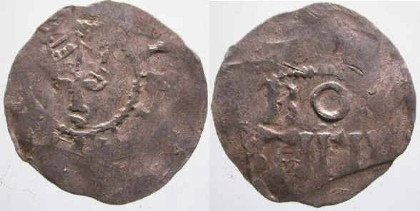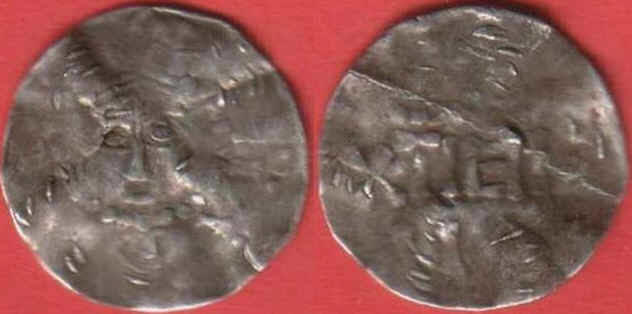 Bernold (1027-1054) Pfennig (Silber) Münzstätte: Zaltbommel Vs: Gekrönter Kopf v. v., zu den Seiten