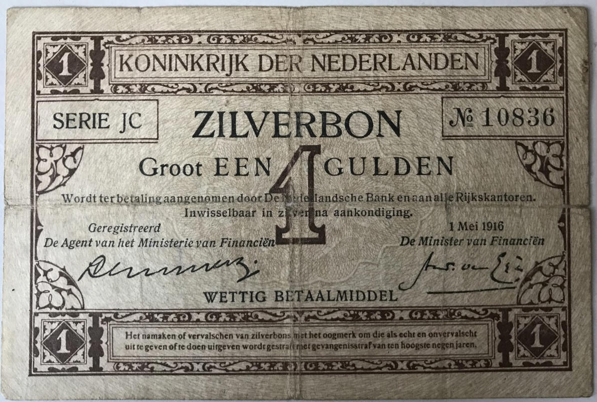 1 Gulden 1916 Zilverbon. Mev. 02-1b; PL 2a.2 [# JC 10836].