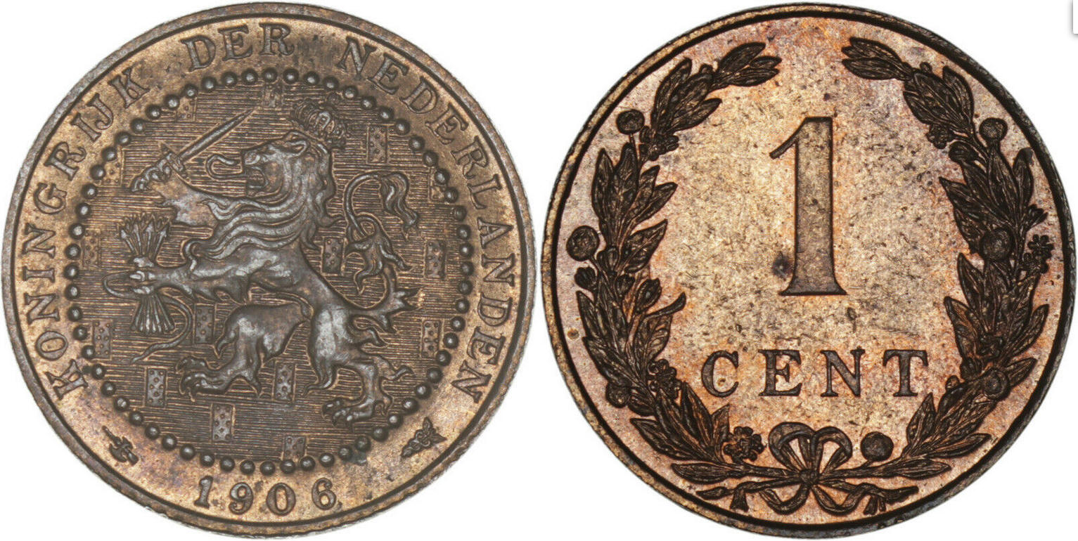 Type munt | 1 cent | Omschrift voorzijde | KONINGRIJK DER NEDERLANDEN 1906 | Muntconditie | UNC |