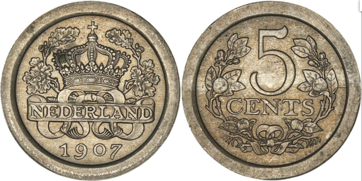Type munt | 5 cent | Omschrift voorzijde | NEDERLAND 1907 |