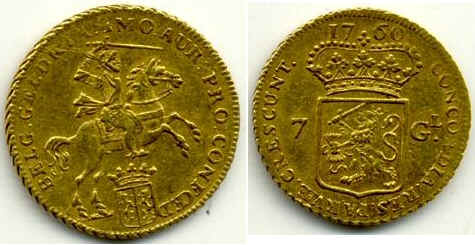 Randschrift MO AUR PRO CONFOED BELG GELDRIA, in de jaren 1750, 1751, 1761 en 1762 is het randschrift MO AUR PRO CONFOED BELG D. G. en C. Z.